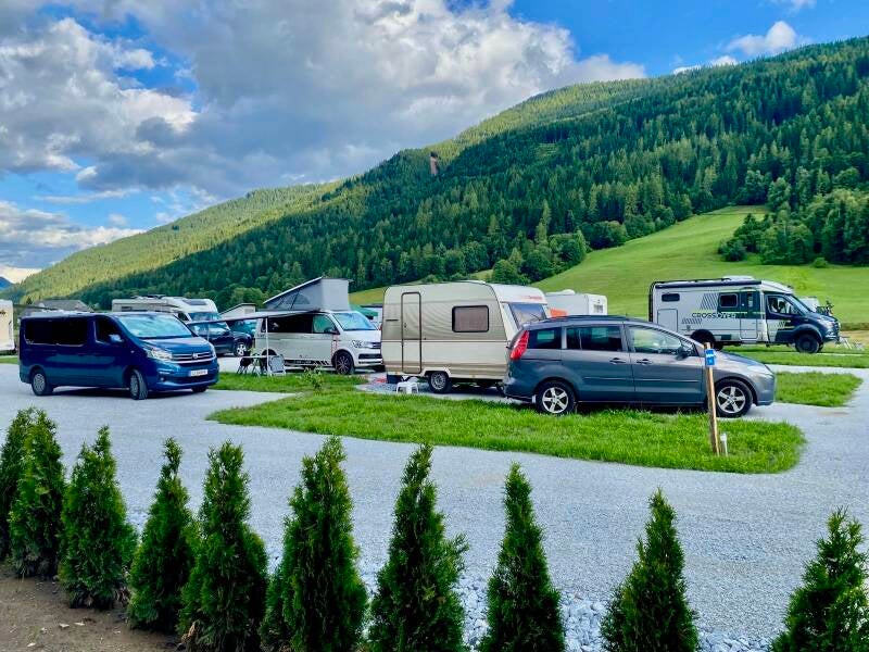 Unser Campingplatz bietet großzügige, ebene, befestigte Stellplätze mit zusätzlicher Wiesenfläche, die ausreichend Platz für Wohnmobile, Wohnwagen, Autos und Zelte bieten. Sie können Ihren Stellplatz frei wählen und finden so je nach Wunsch den passenden Raum für Ihr Fahrzeug und Ihre Campingausstattung. Für Zweiräder steht ein separater Zeltplatz auf der Wiese zur Verfügung.